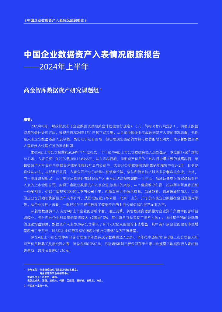 高金智库:中国企业数据资产入表情况跟踪报告(2024年上半年).pdf