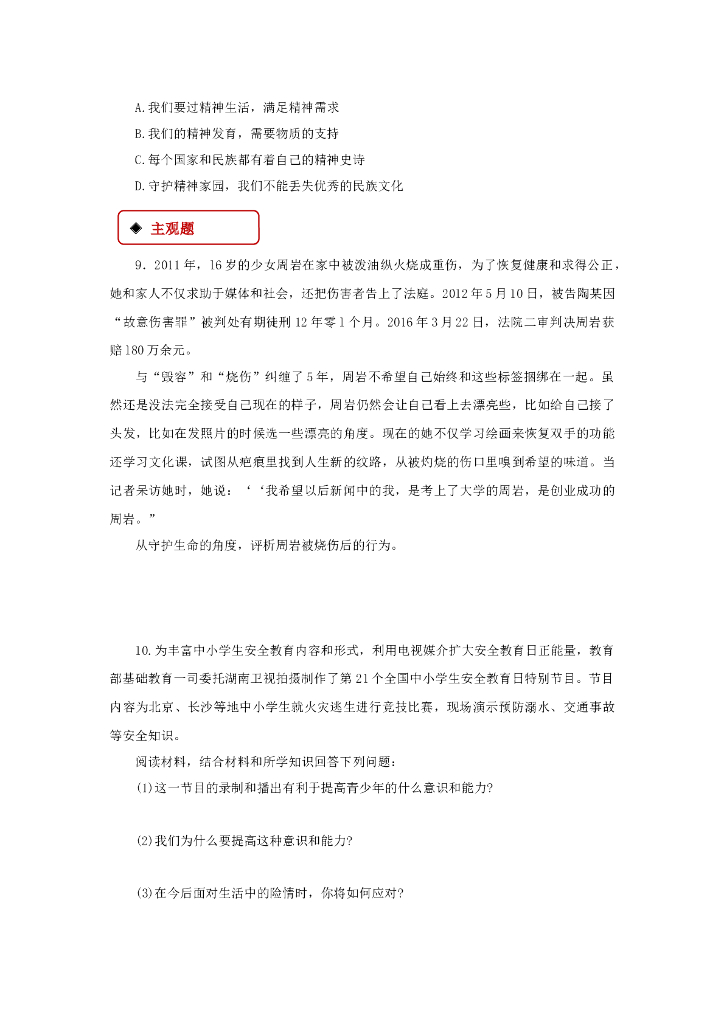 七年级上册 初中道德与法治9.1《守护生命》同步练习.doc