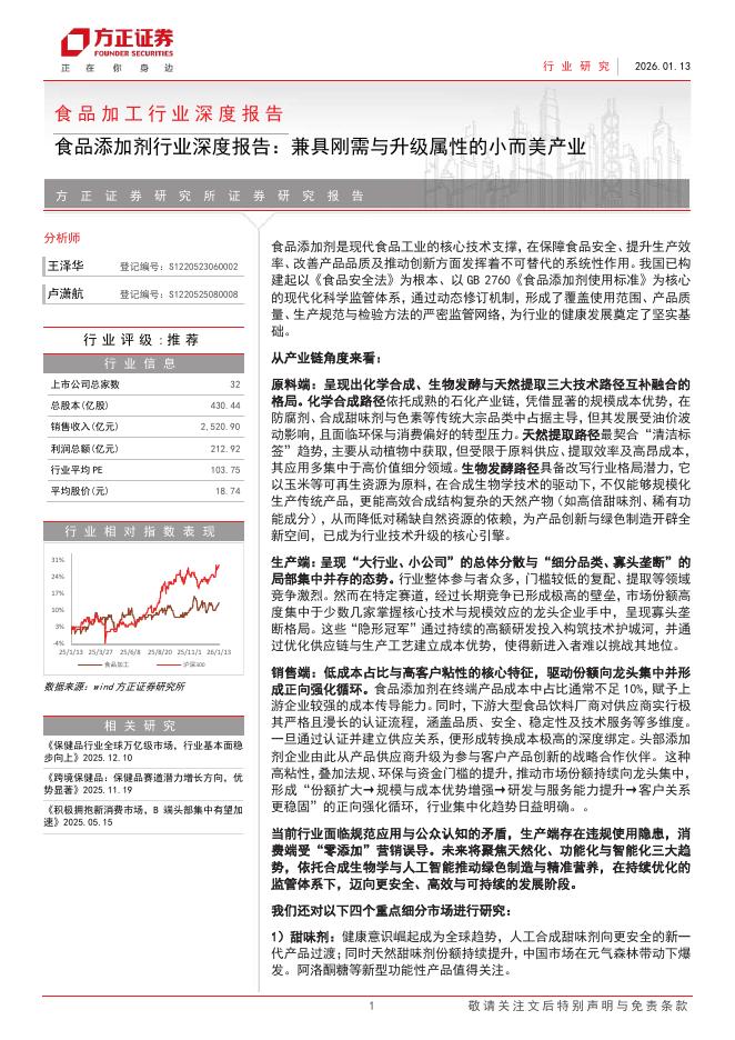 方正证券:食品添加剂行业深度报告:兼具刚需与升级属性的小而美产业.pdf