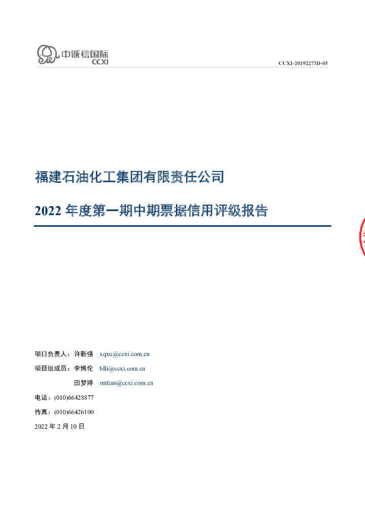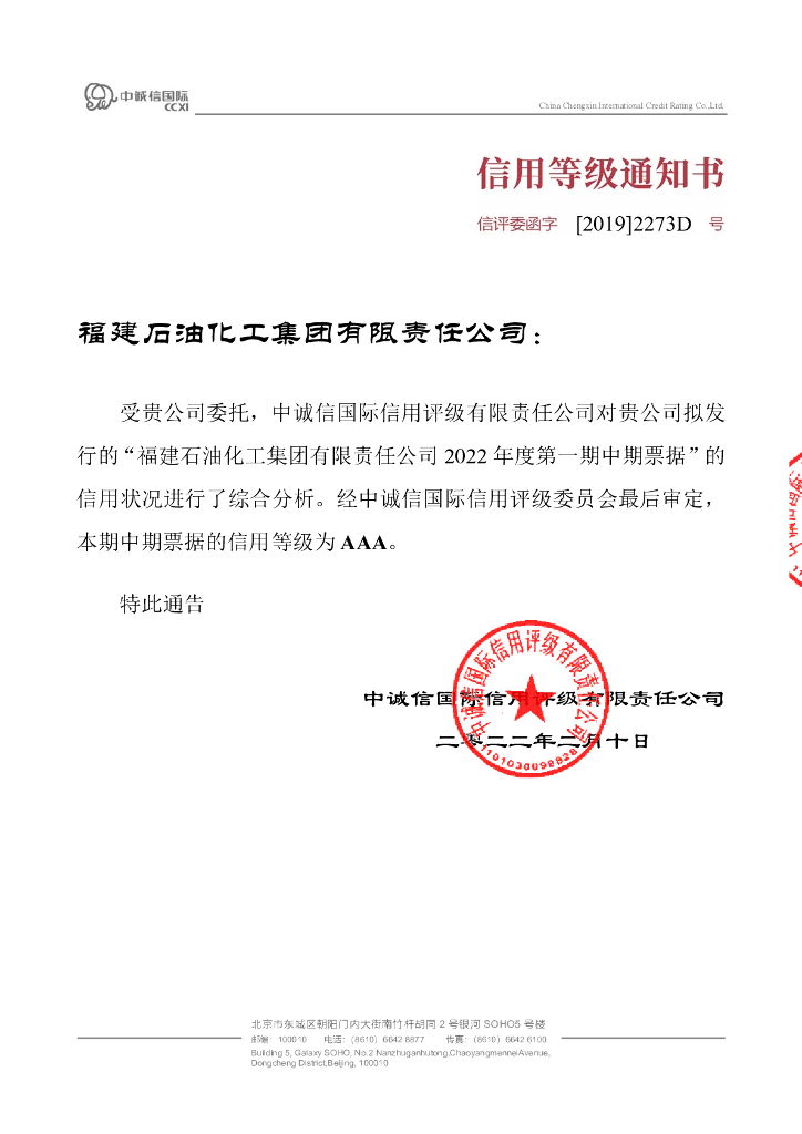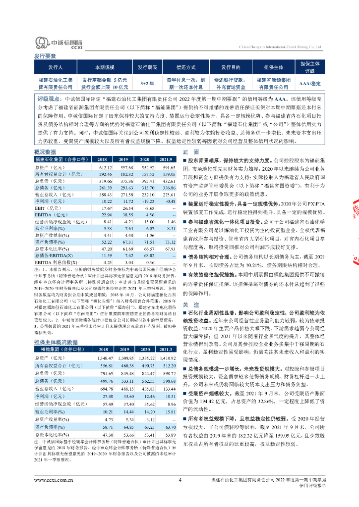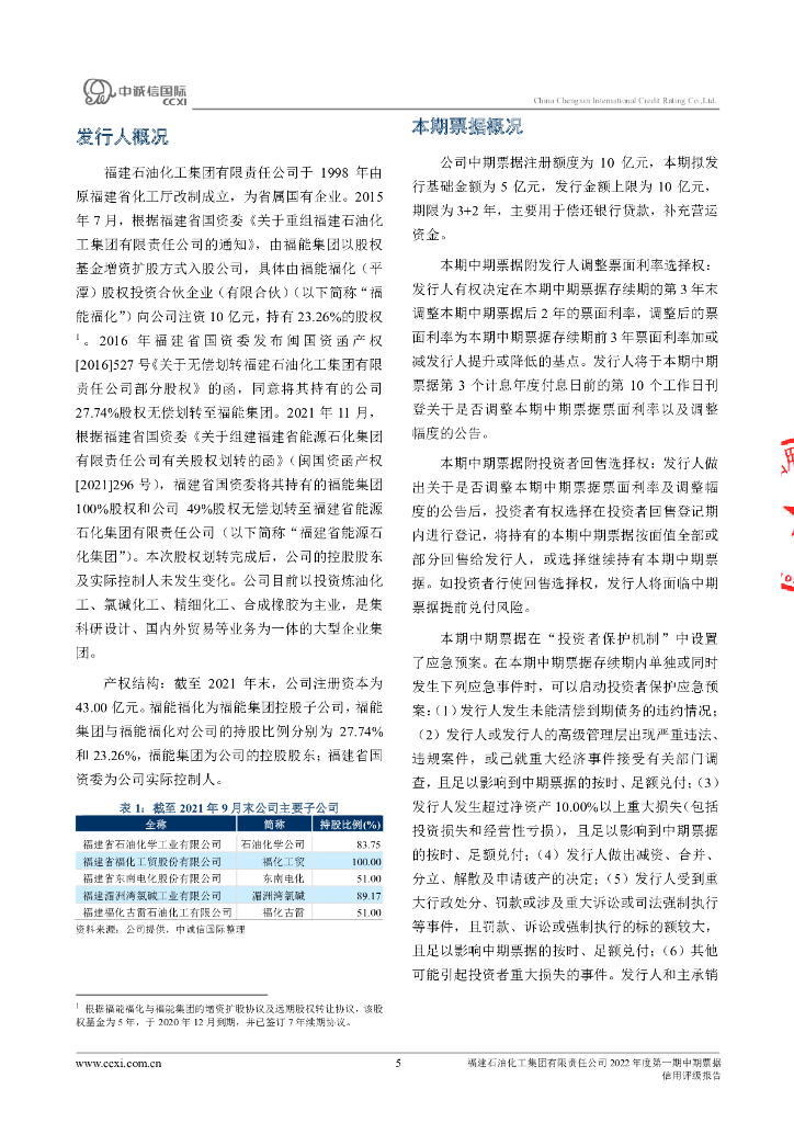 中诚信:福建石油化工集团有限责任公司2022年度第一期中期票据信用评级报告.pdf