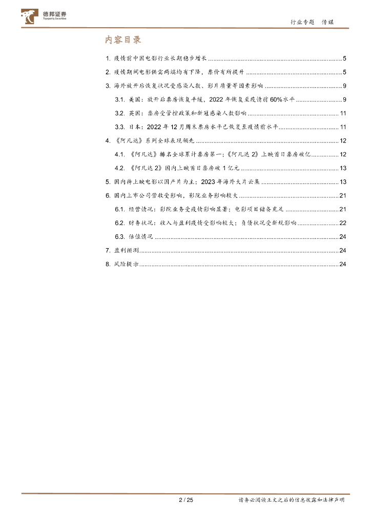 德邦证券:传媒行业专题:《阿凡达2》上映带动电影产业链复苏,关注恢复常态后的投资机会.pdf