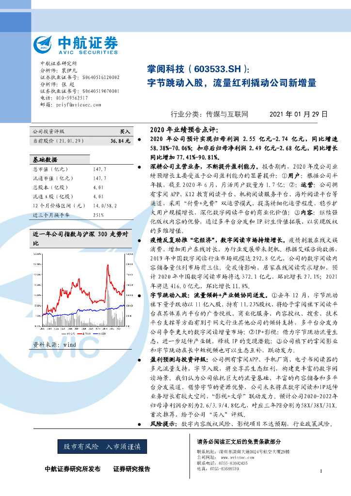 中航证券:掌阅科技(603533)-2020年业绩预告点评:字节跳动入股,巨大流量红利撬动公司新增量.pdf
