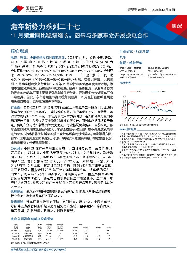 国信证券:造车新势力系列二十七:11月销量同比稳健增长,蔚来与多家车企开展换电合作.pdf