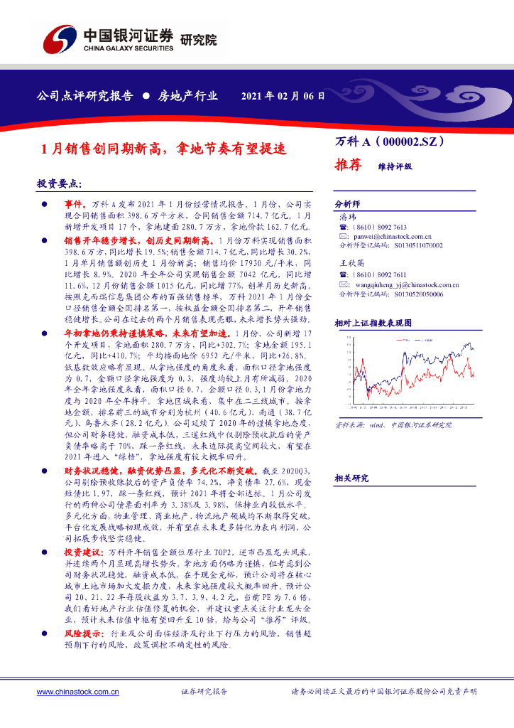 中国银河:万科A(000002)-1月销售创同期新高,拿地节奏有望提速.pdf