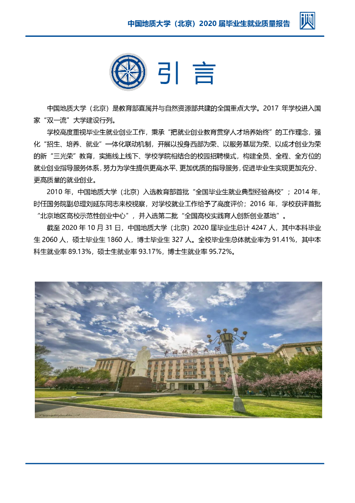 中国地质大学(北京) 2020届毕业生就业质量报告.pdf