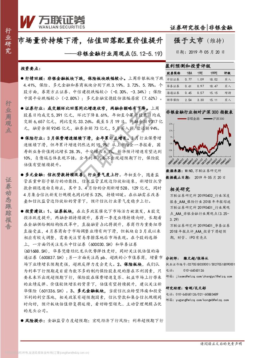 万联证券:非银金融行业周观点:市场量价持续下滑,估值回落配置价值提升.pdf