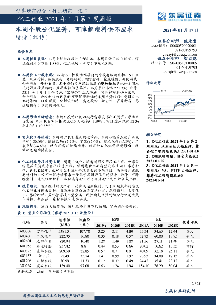 东吴证券:化工行业2021年1月第3周周报:本周个股分化显著,可降解塑料供不应求.pdf