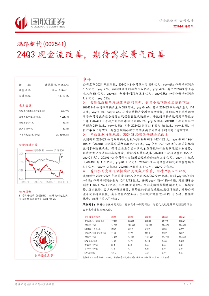 国联证券:鸿路钢构(002541)-24Q3现金流改善,期待需求景气改善.pdf