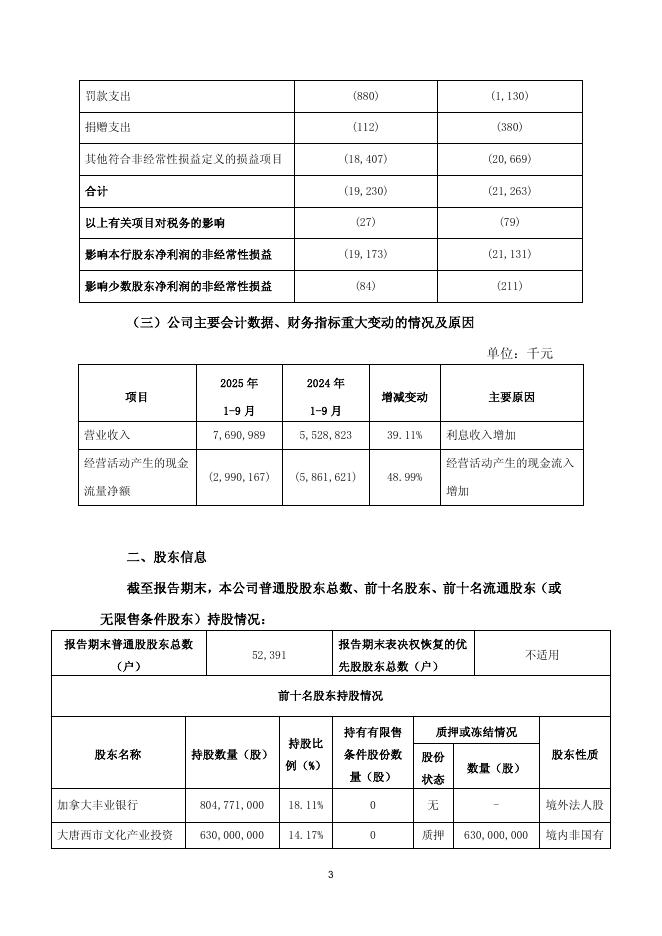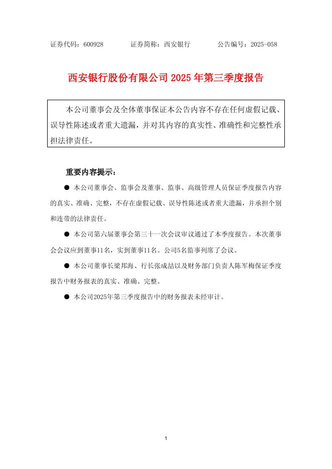 600928-西安银行:西安银行股份有限公司2025年第三季度报告.pdf
