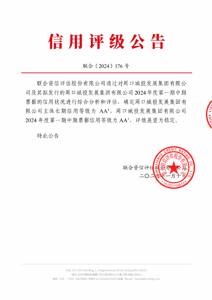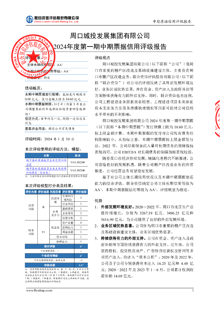联合资信:周口城投发展集团有限公司2024年度第一期中期票据信用评级报告.pdf