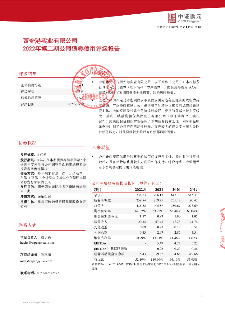 鹏元:西安港实业有限公司2022年第二期公司债券信用评级报告.pdf