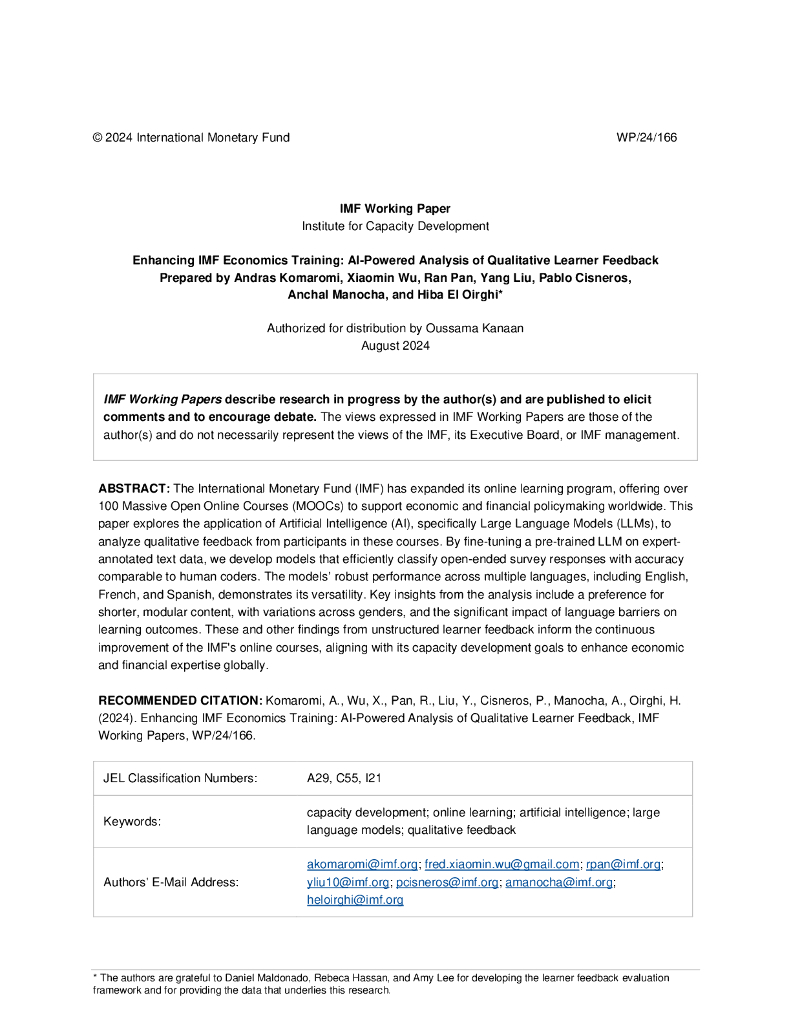 国际货币基金组织:2024加强IMF经济学培训:基于人工智能的定性学习者反馈分析报告(英文版).pdf