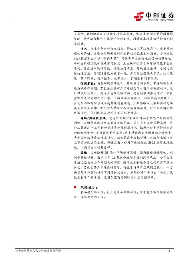 中邮证券:食品饮料2025年三季报总结:白酒主动释放压力,速冻迎来行业拐点,软饮/零食量贩高景气维持.pdf
