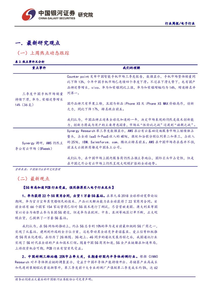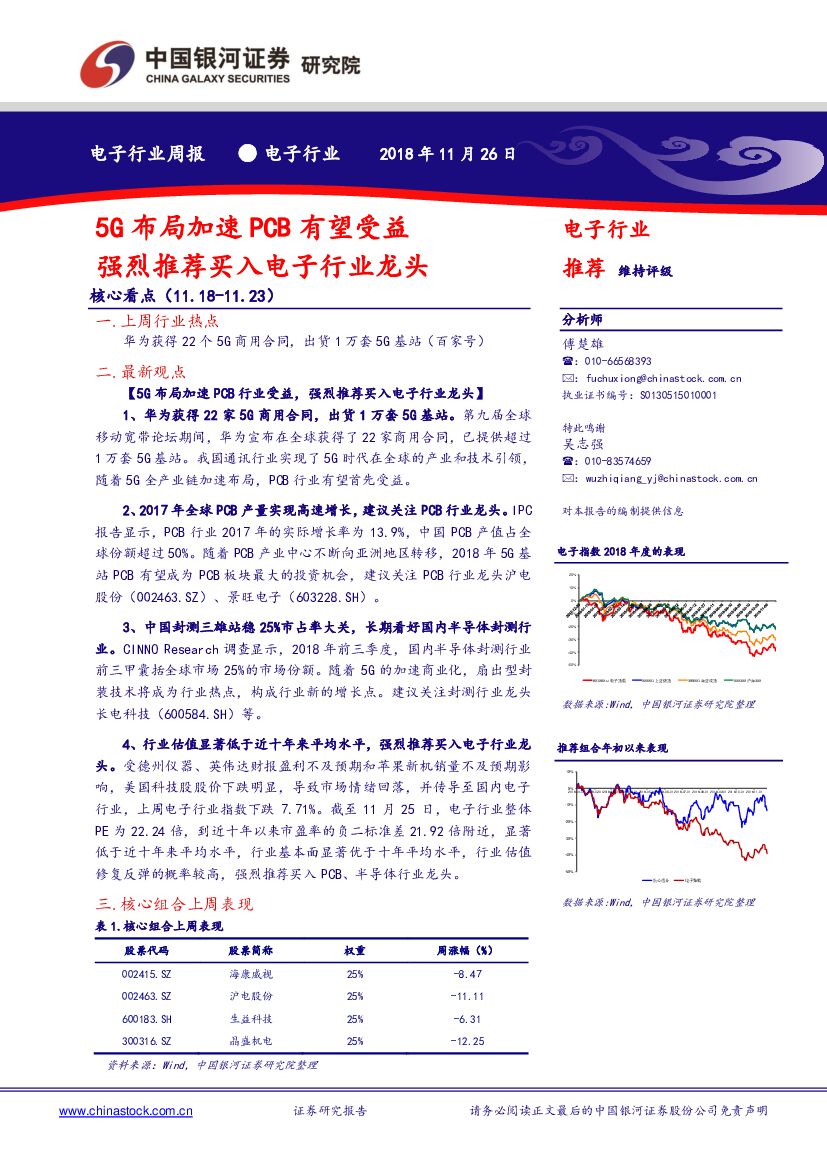 中国银河:电子行业周报:5G布局加速PCB有望受益,强烈推荐买入电子行业龙头.pdf