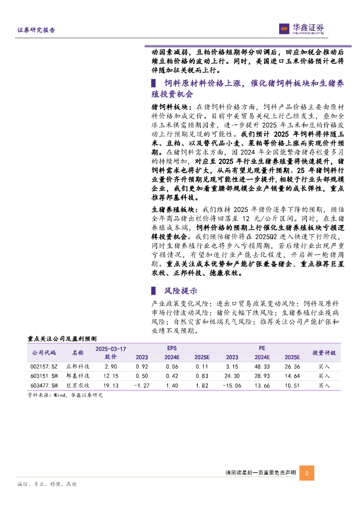 华鑫证券:农林牧渔行业点评报告:全球供需+关税上行双因素催化,重点推荐猪饲料&生猪养殖板块.pdf