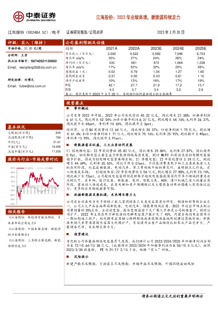 中泰证券:江海股份:2022年业绩高增,新能源持续发力.pdf