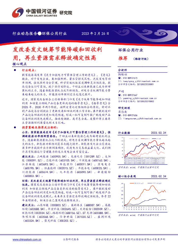中国银河:环保公用行业行业动态报告:发改委发文统筹节能降碳和回收利用,再生资源需求释放确定性高.pdf