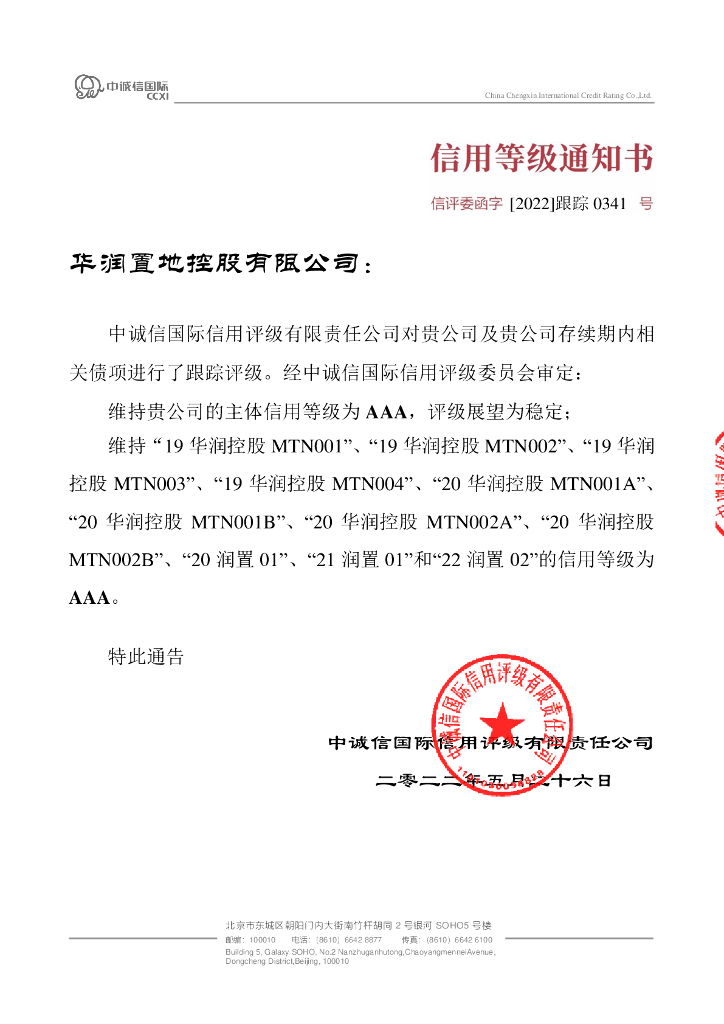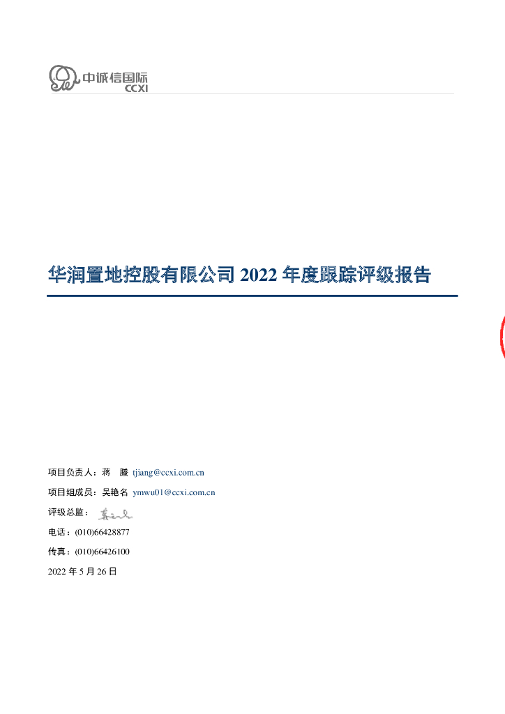 中诚信:华润置地控股有限公司2022年度跟踪评级报告.pdf
