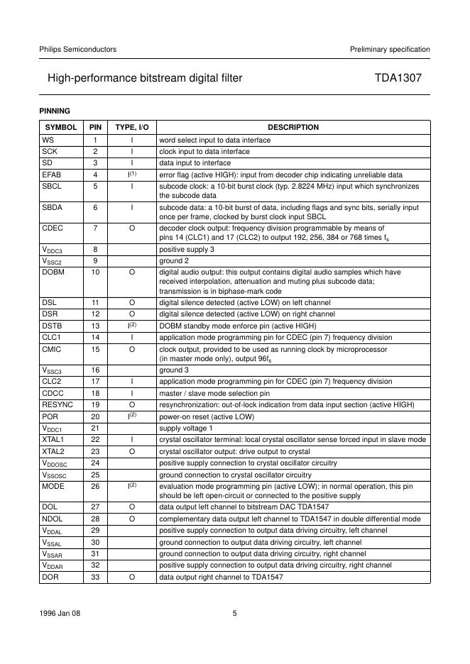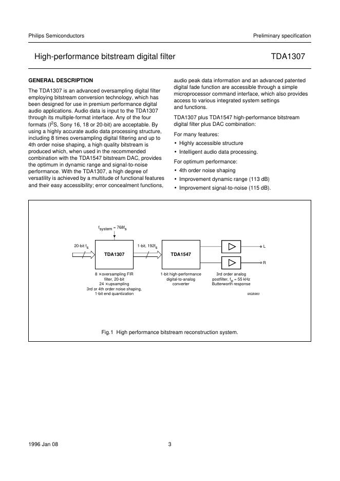 philips TDA1307 High-performance bitstream digital filter 数据手册.pdf