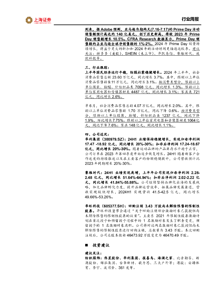 上海证券:轻工纺服行业周报:上半年纺服社零同增1.3%,关注国货龙头中期业绩表现.pdf