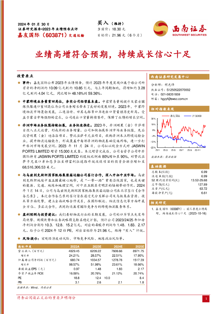 西南证券:嘉友国际(603871)-业绩高增符合预期,持续成长信心十足.pdf