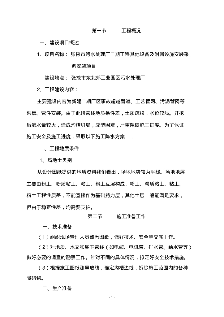[甘肃]张掖市污水处理厂工程管线工程沟槽降排水施工方案.pdf