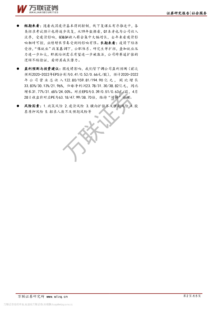万联证券:中公教育(002607)-季报点评报告:疫情影响收入确认节奏,长期扩张逻辑不变.pdf