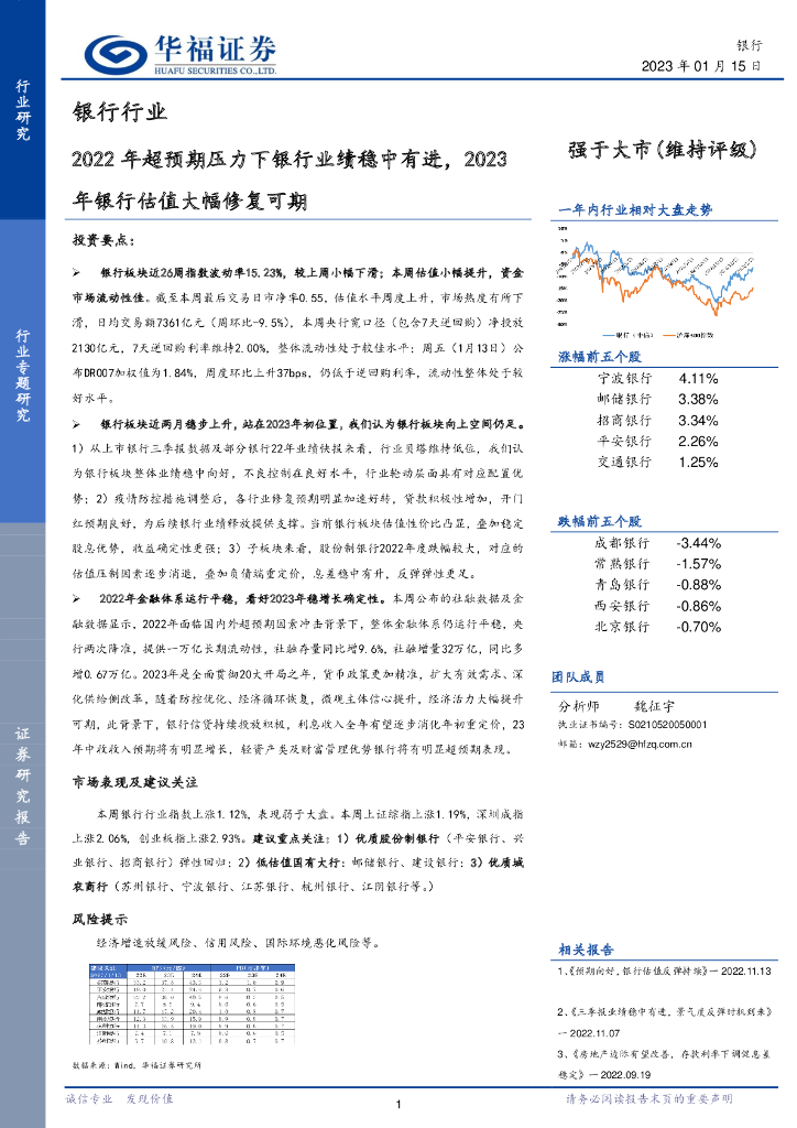 华福证券:银行行业:2022年超预期压力下银行业绩稳中有进,2023年银行估值大幅修复可期.pdf