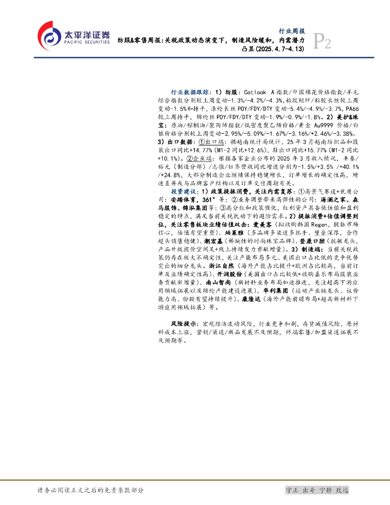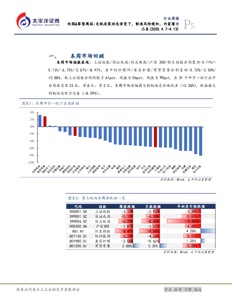 太平洋证券:纺服&零售行业周报:关税政策动态演变下,制造风险缓和,内需潜力凸显.pdf