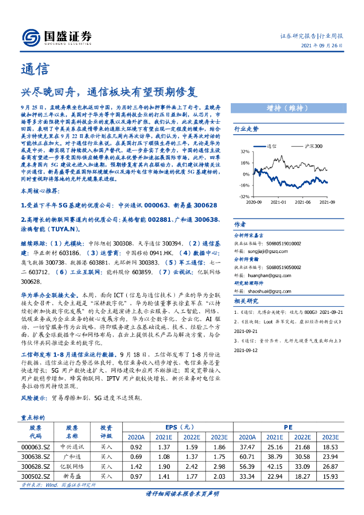 国盛证券:通信行业周报:兴尽晚回舟,通信板块有望预期修复.pdf