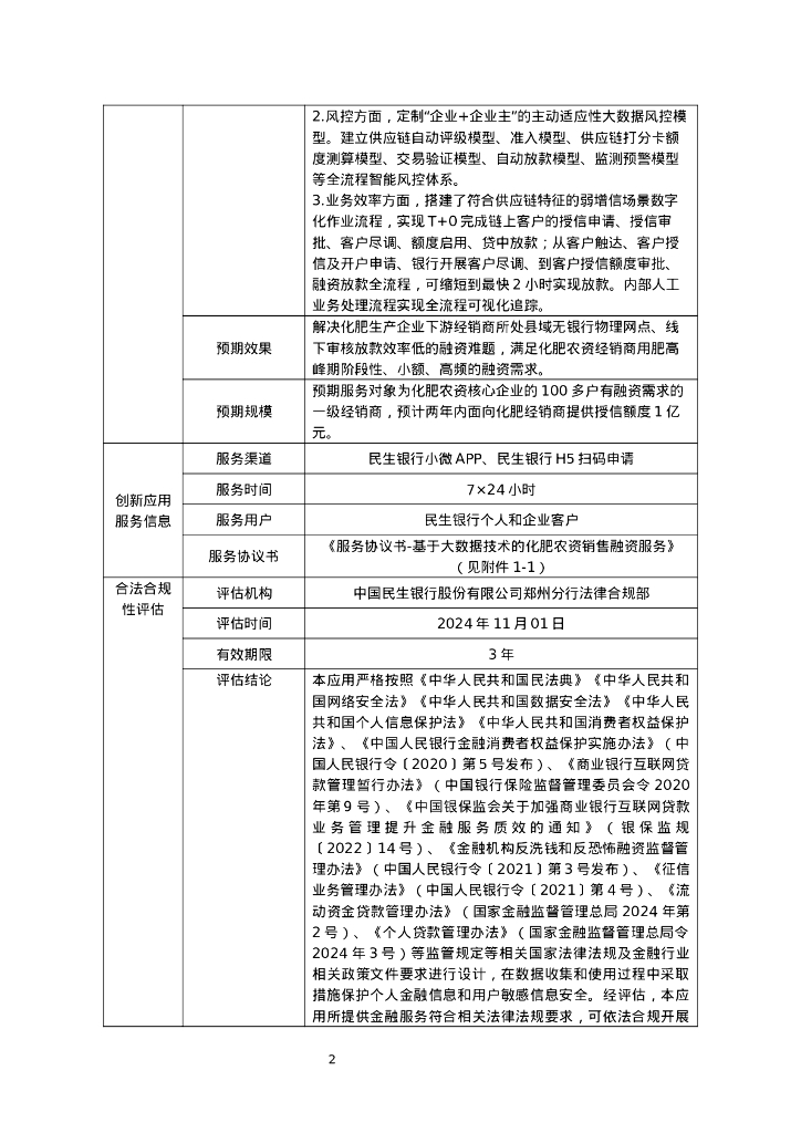 金融科技创新应用声明书:基于大数据技术的化肥农资销售融资服务.doc