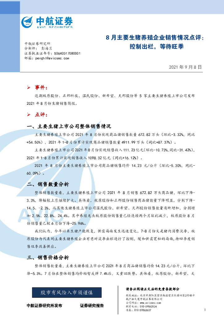 中航证券:8月主要生猪养殖企业销售情况点评:控制出栏,等待旺季.pdf