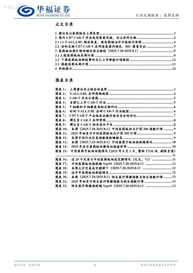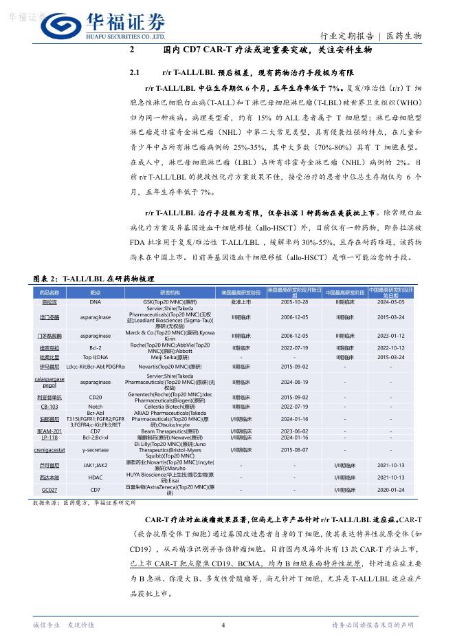 华福证券:医药生物行业定期报告——国内CD7CAR-T疗法或迎突破,关注安科生物.pdf
