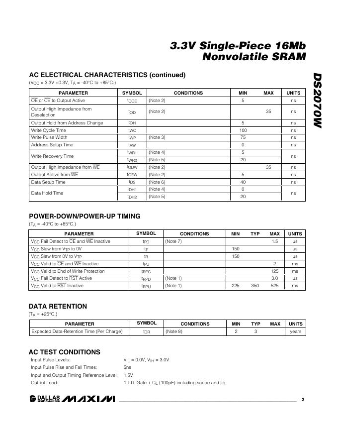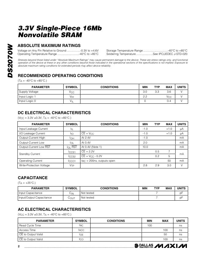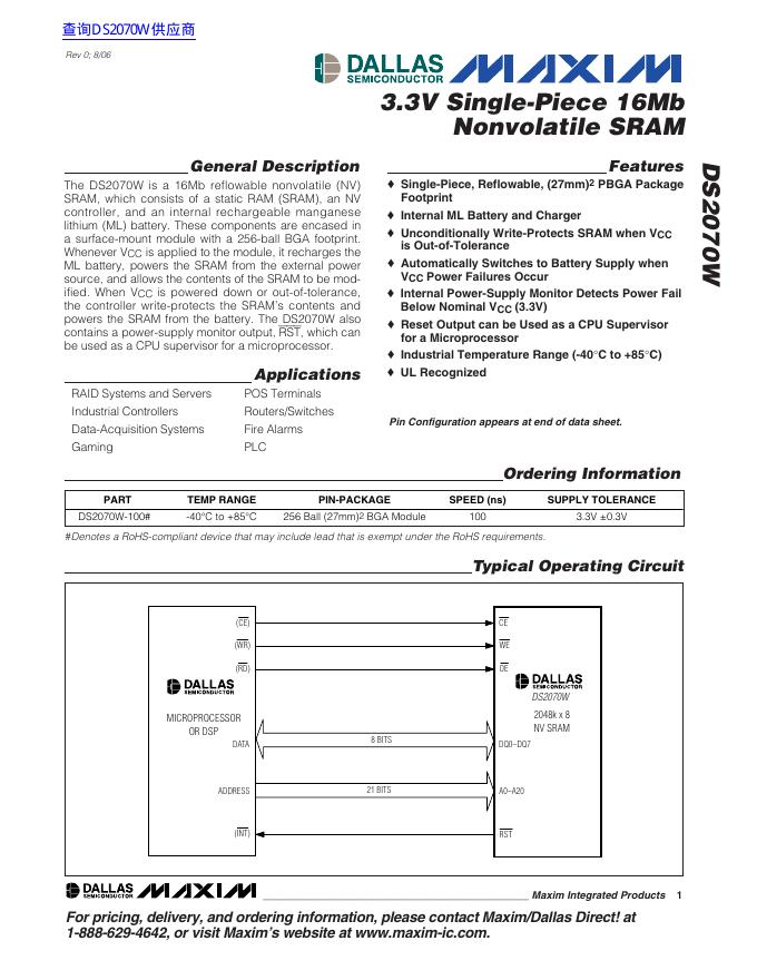 MAXIM DS2070W 3.3V Single-Piece 16Mb Nonvolatile SRAM 数据手册.pdf