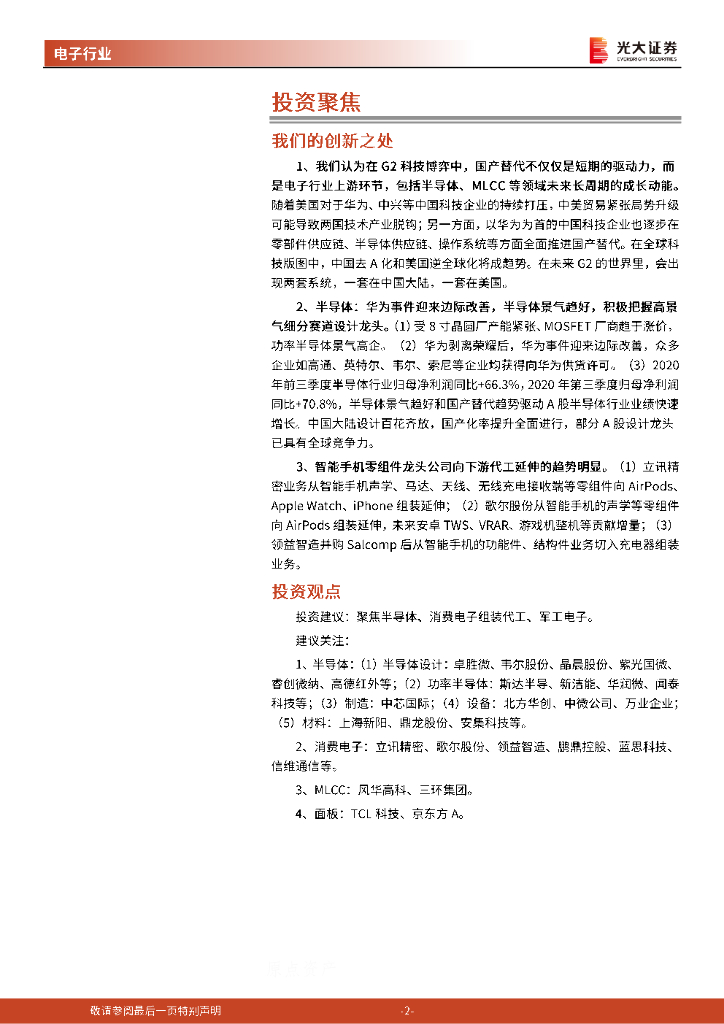 光大证券:电子行业2021年投资策略:一个世界,两套系统,G2时代下的国产替代和智能创新.pdf