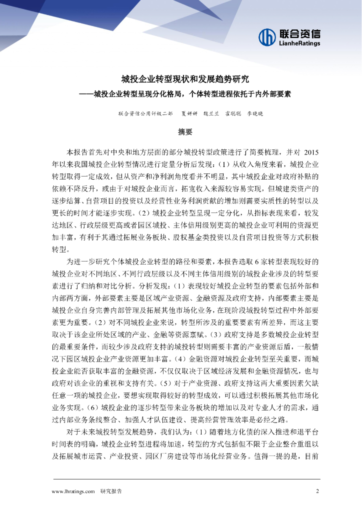 联合资信:2024年城投企业转型现状和发展趋势研究——城投企业转型呈现分化格局,个体转型进程依托于内外部要素.pdf