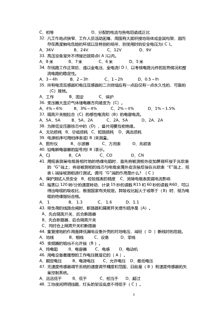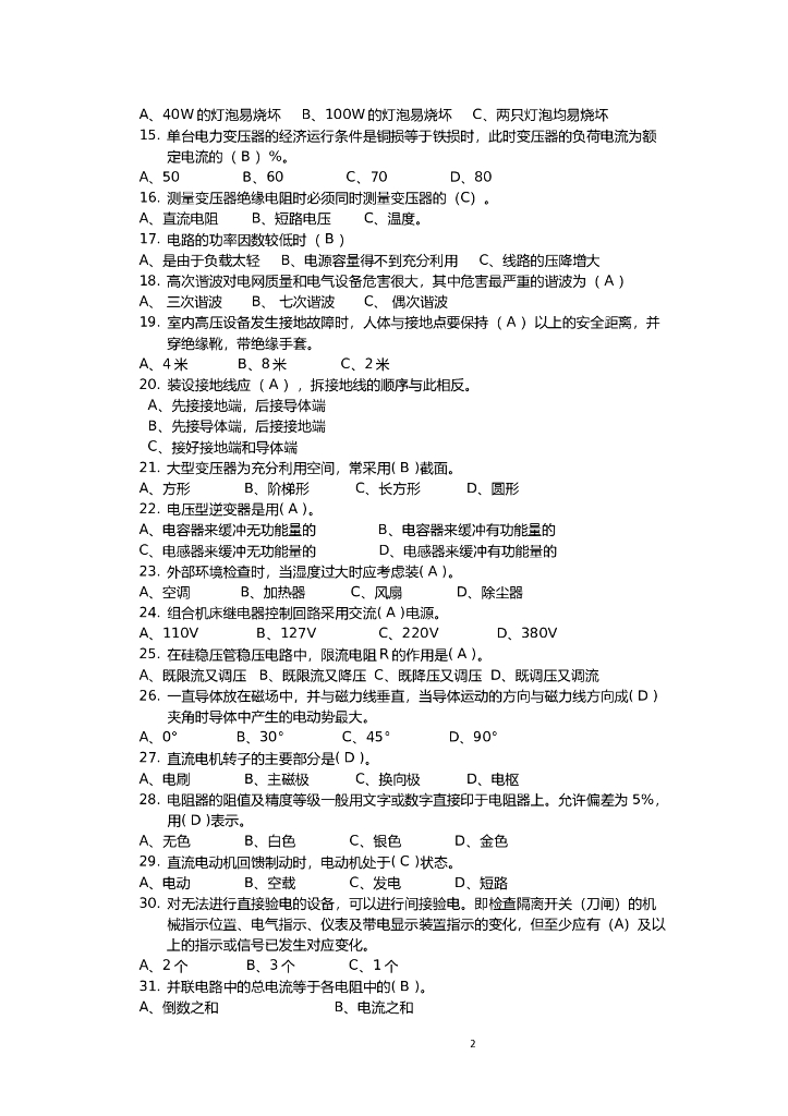 电工竞赛题库(单选题).doc