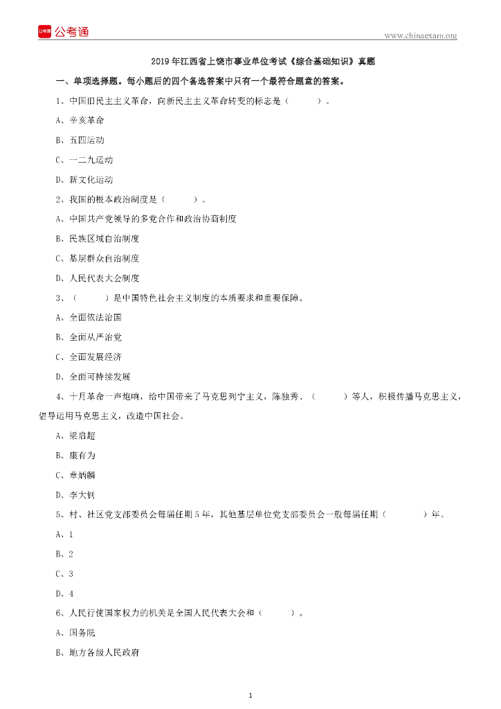 2019年江西上饶市事业单位考试《综合基础知识》真题.pdf