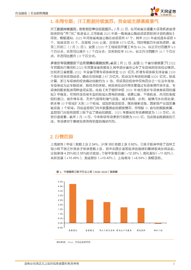 天风证券:建筑装饰行业研究周报:开工数据持续复苏,资金端支撑基建景气.pdf