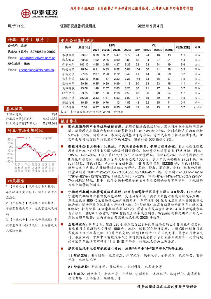 中泰证券:汽车电子周跟踪:8月新势力车企销量同比维持高增,后续进入新车型密集交付期.pdf