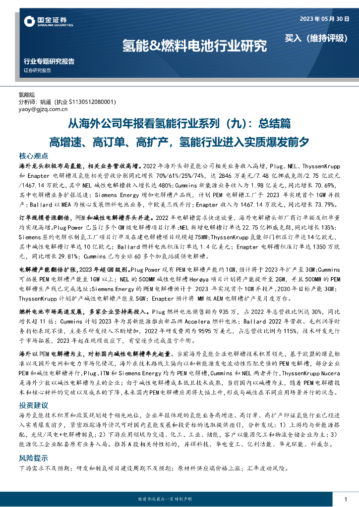 国金证券:氢能&燃料电池行业研究:从海外公司年报看氢能行业系列(九):总结篇,高增速、高订单、高扩产,氢能行业进入实质爆发前夕.pdf