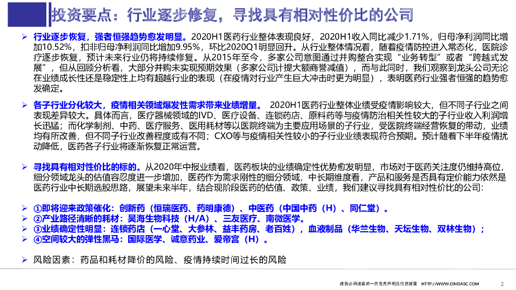 信达证券:医药行业2020H1财报分析:寻找具有相对性价比的公司.pdf