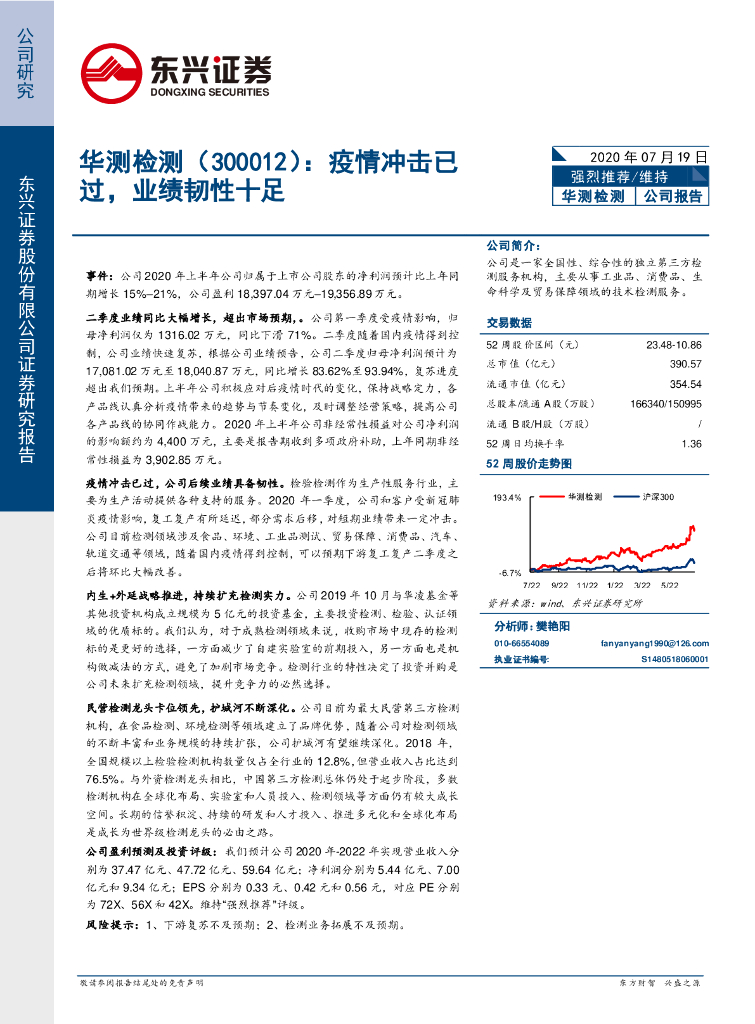 东兴证券:华测检测(300012)-疫情冲击已过,业绩韧性十足.pdf