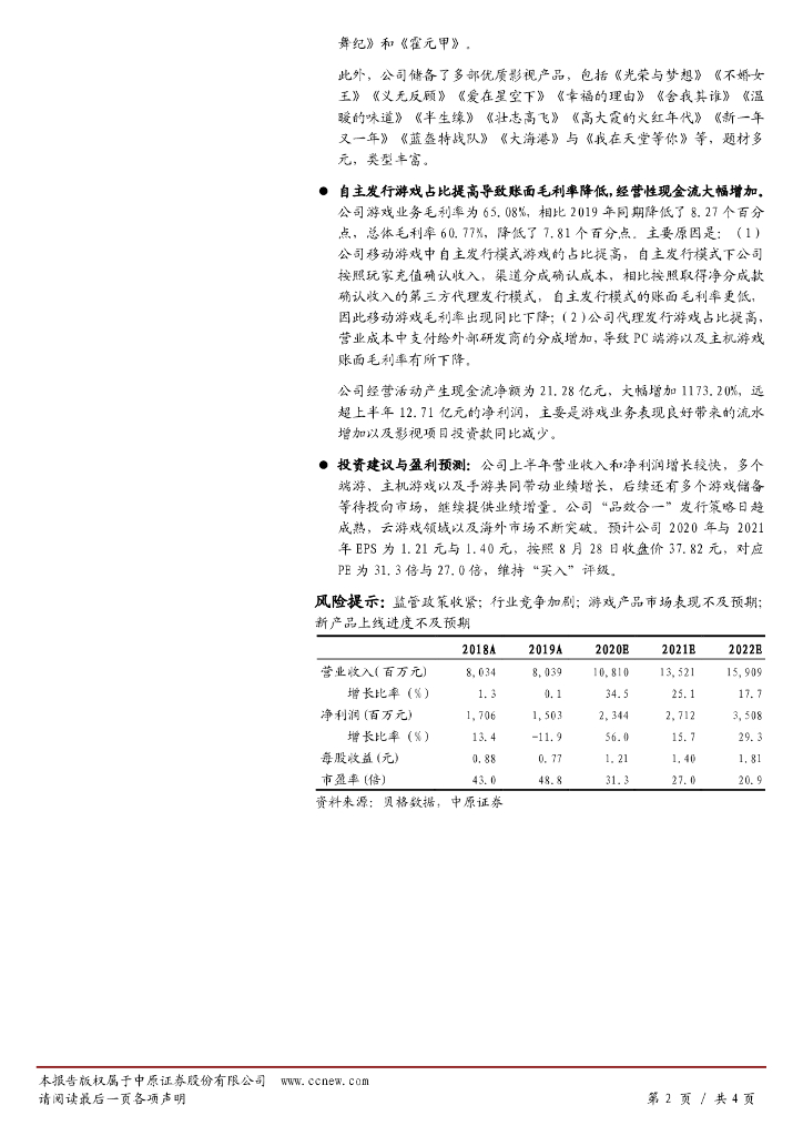 中原证券:完美世界(002624)-中报点评:上半年业绩高增,新老游戏产品表现亮眼.pdf
