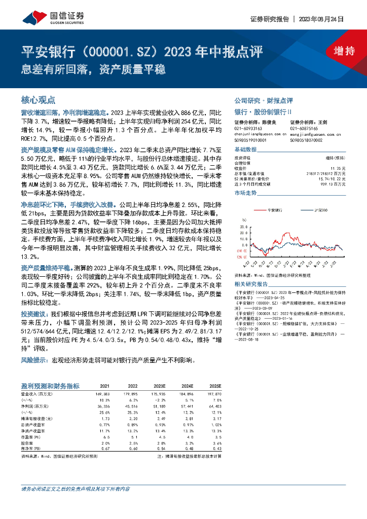 国信证券:平安银行(000001)-2023年中报点评:息差有所回落,资产质量平稳.pdf