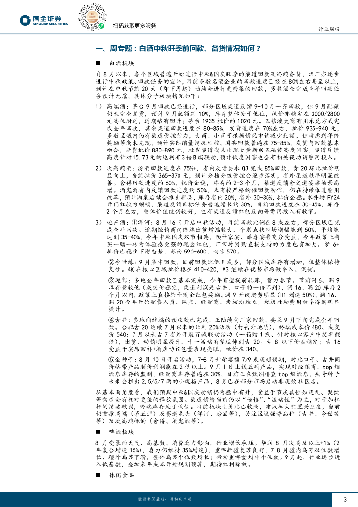 国金证券:食品饮料行业研究:白酒中秋旺季前回款、备货情况如何?.pdf