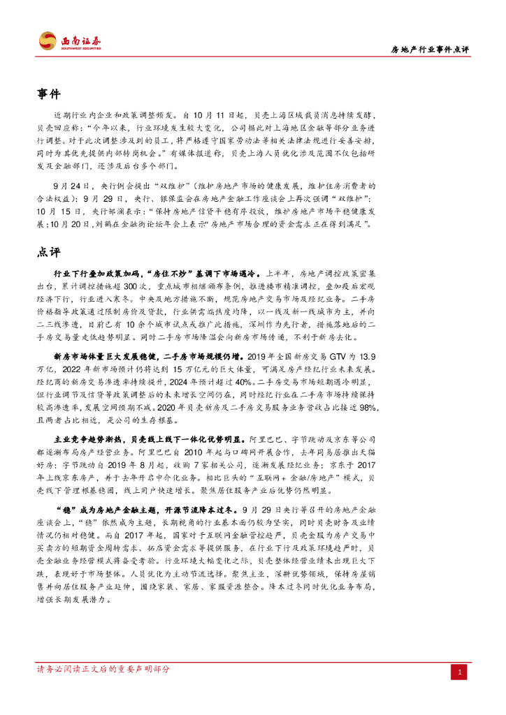 西南证券:房地产行业事件点评:贝壳裁员开源节流,政策调整行业行稳致远.pdf