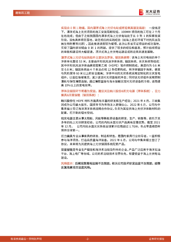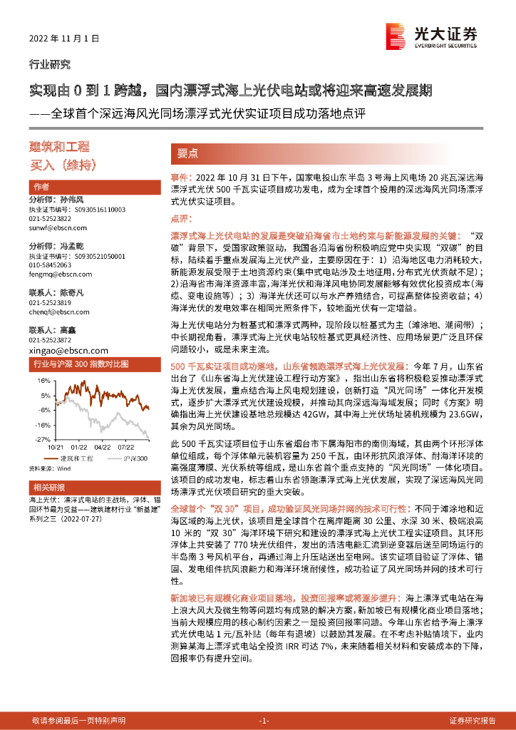 光大证券:建筑和工程行业全球首个深远海风光同场漂浮式光伏实证项目成功落地点评:实现由0到1跨越,国内漂浮式海上光伏电站或将迎来高速发展期.pdf
