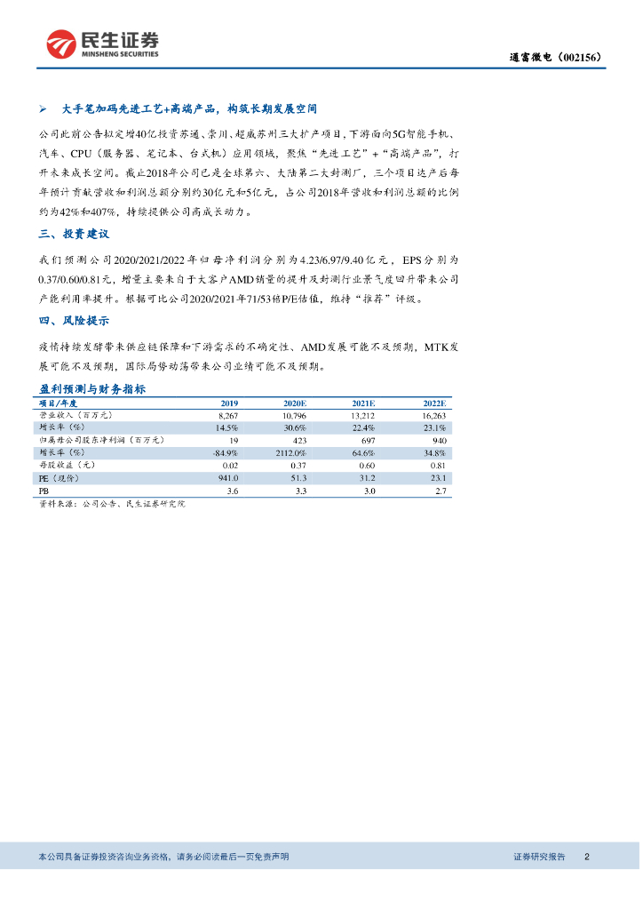 民生证券:通富微电(002156)-2019年先抑后扬,成功扭亏.pdf