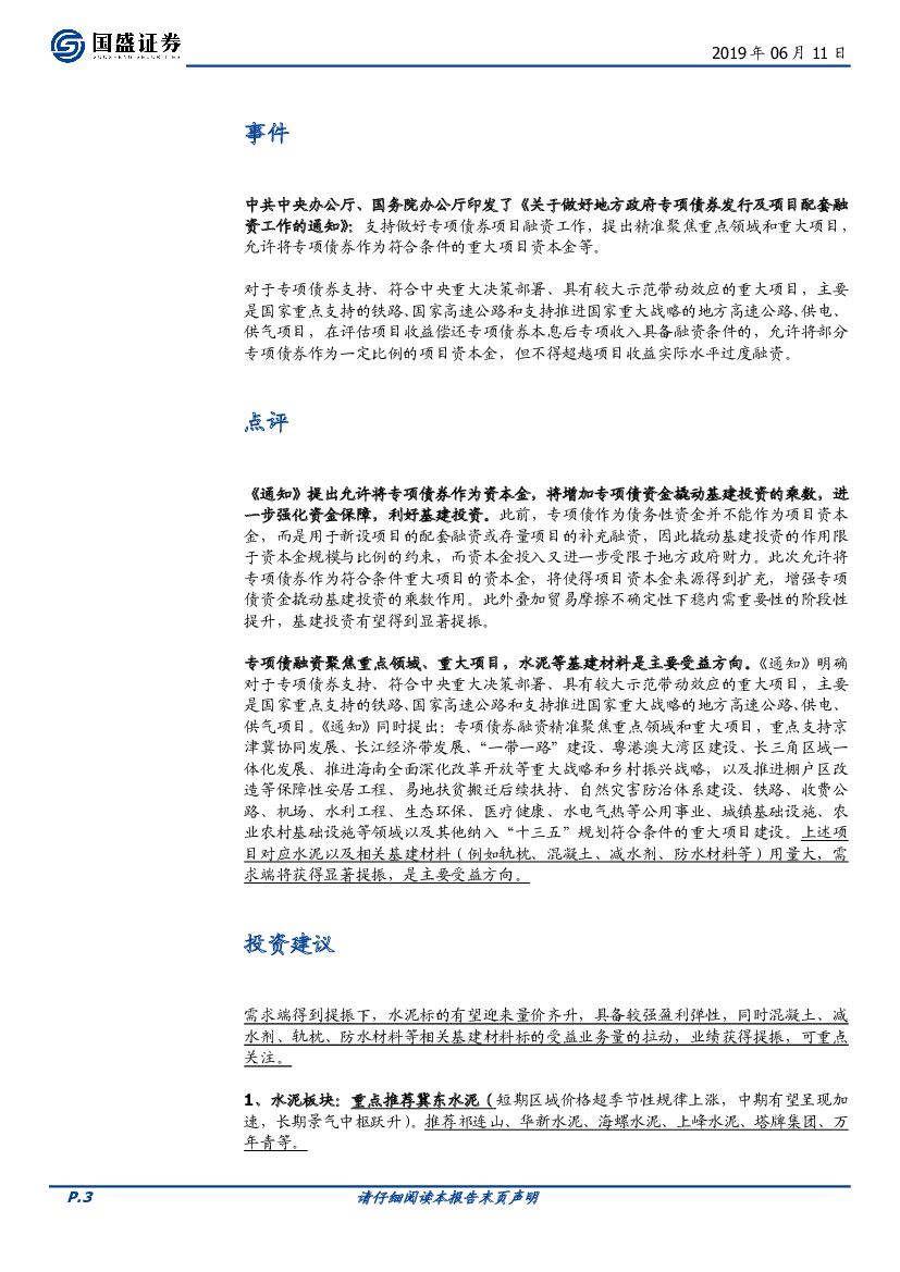 国盛证券:建筑材料行业点评:专项债新规利好基建投资,水泥等基建材料受益.pdf